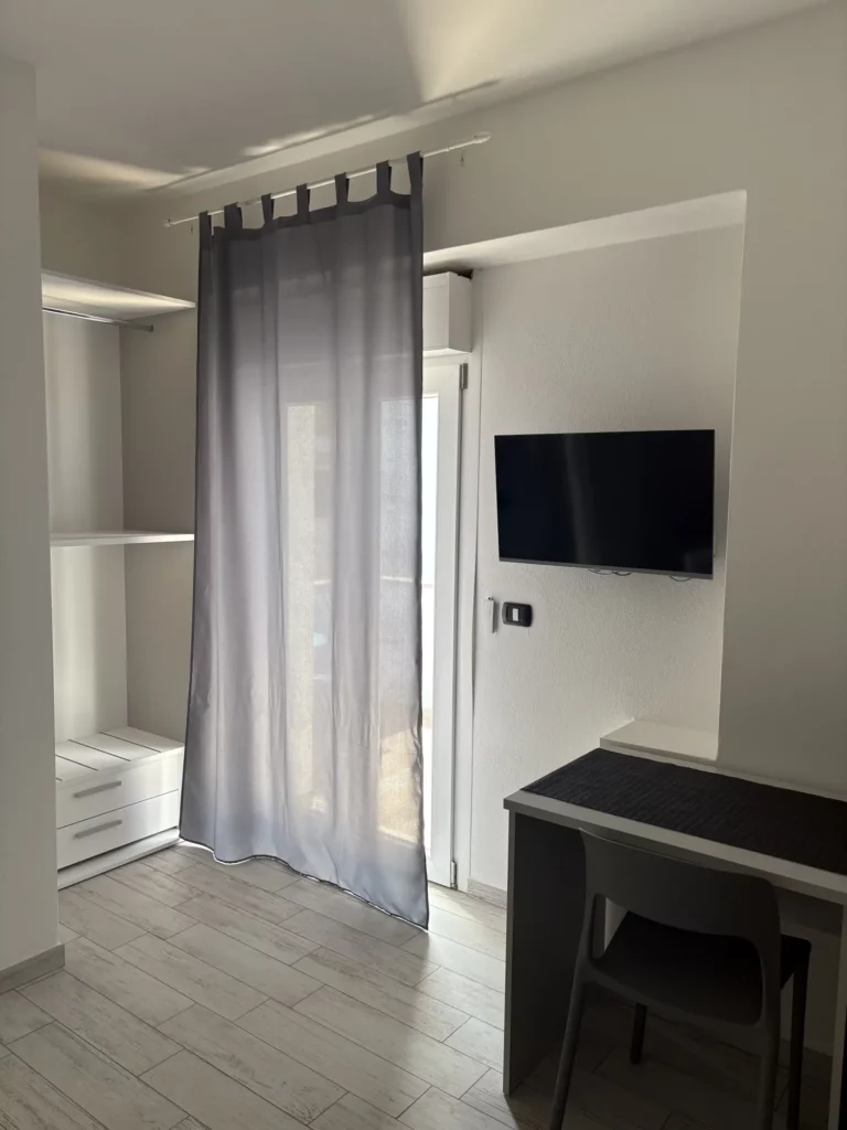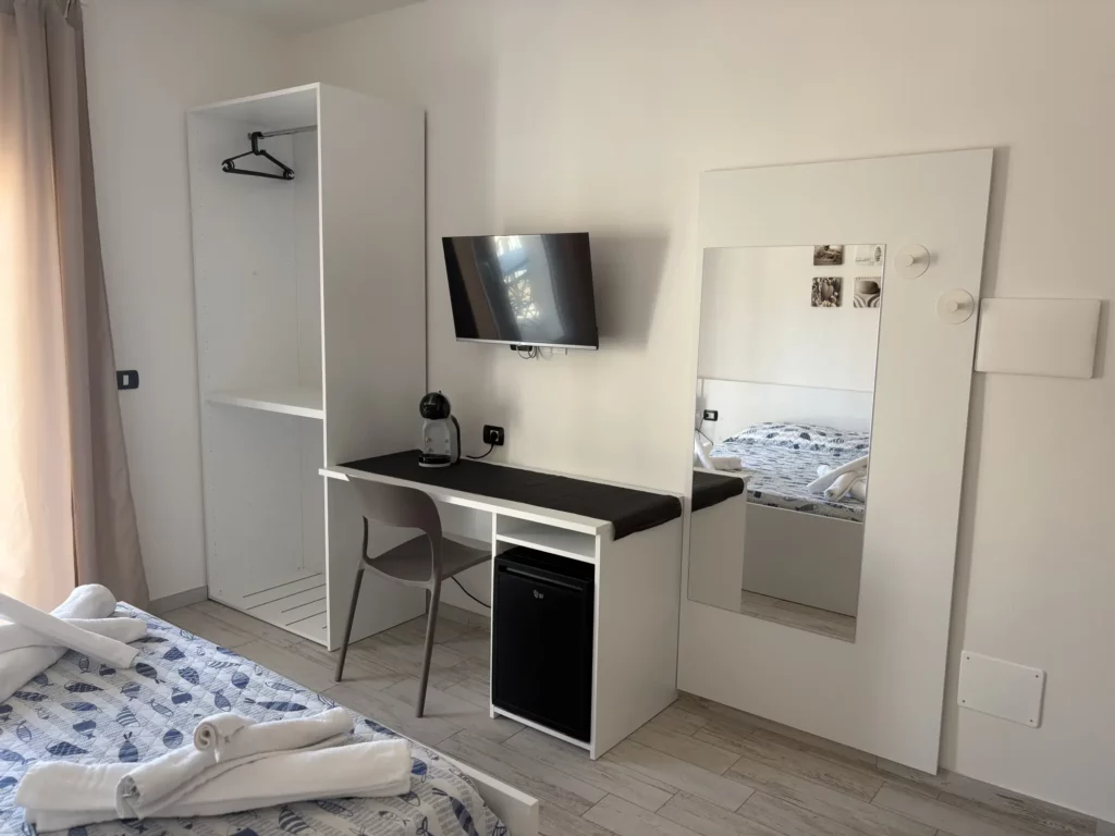 Camera doppia di 15 m2 dotata di aria condizionata, pareti insonorizzate, terrazza con vista mare e bagno privato con doccia.